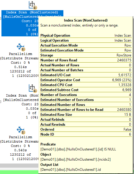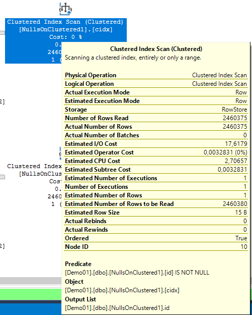 Predicate id IS NULL e Predicate id IS NOT NULL? Bem, então é por isso que ele anda a usar o noclustered, para procurar os id a null.